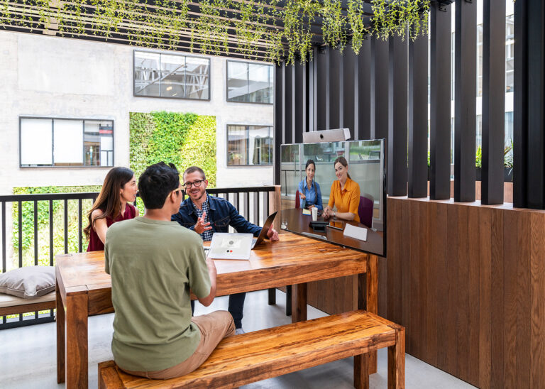 Webex Desk Mini macht jeden Arbeitsplatz zum Lieblingsplatz. Das tragbare Schreibtischgerät sieht überall gut aus und ist für Meetings in jedem Raum geeignet.